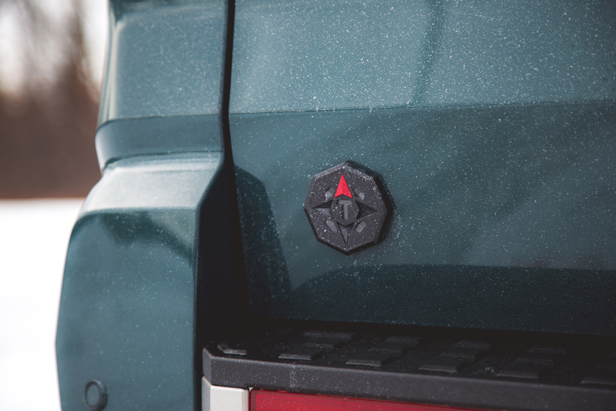 Hay un compresor de aire a bordo y un snorkel montado en el pilar A del lado del pasajero que canaliza los silbidos del turbo al acelerar. Baje la ventanilla del pasajero y se oirá suficiente movimiento de la válvula de descarga como para pasar como la banda sonora oficial del WRC. Dicho esto, la falta de las ruidosas y emocionantes voces del sistema de escape TRD hace que el Trailhunter parezca notablemente delgado, hueco y lento. Ambos usan los mismos neumáticos todo terreno Toyo Open Country de 33 pulgadas, pero cada uno con su propio diseño de llantas de aleación; el Trailhunter es un bronce atractivo que casi vale la pena por sí solo. También tienen colores de pintura exclusivos, como este Everest verdoso, que contrasta muy bien con fondos boscosos y brumosos.